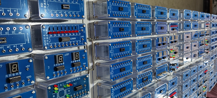 电工创新实训模块为塑料有机盒及PCB板构成,且包括多个组合模块,为学生提供了一个进行综合应用、创新实训、可充分发挥学生潜能的完全开放的平台。