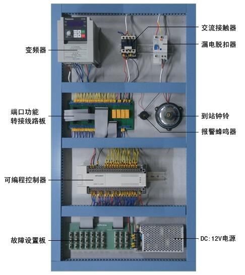 电梯的电气控制系统采用PLC和交流变频调速控制,其硬件结构的组成及功能与实际电梯完全一样。具有自动平层、自动关门、顺向响应轿内外呼梯信号、直驶、电梯安全运行保护以及电梯急停、慢上、慢下、照明、风扇等功能,性能可靠、运行平稳、操作简单、能耗低,特别适合于教学。此外,透明仿真教学电梯的软硬件均采用开放式结构,因此,院校也可以利用此套装置进行二次开发研究。