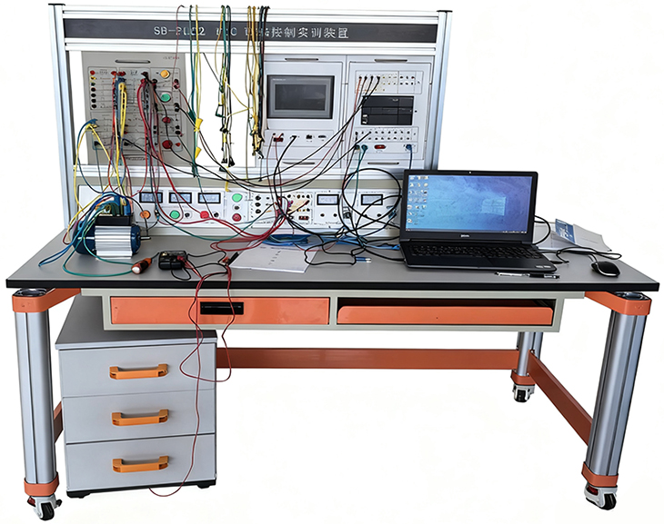 PLC可编程控制器综合实训装置,可编程控制器实训装置,可编程控制实训室(PLC)是专为目前我国各院校开设的《可编程控制器技术》、《可编程控制器及其应用》、《变频调速技术》等课程配套设计的。集可编程逻辑控制器、通信编辑器、编程软件、工控组态软件、仿真教学软件、模拟控制实训挂箱、实物等于一体,可直观地进行PLC的基本指令训练,多个应用广泛的PLC实际应用模拟实训和实物控制实训,同时也为了高层次的设计开发实训提供良好的条件。为了结合教学要求,设计过程中参考了国内多种教材,从中精选出二十七组最具典型性的实训项目,配备三相鼠笼异步电机、继电器、变频器能完成多个电气控制实训。产品采用挂箱式,便于实训项目扩展和用户第二次开发。
