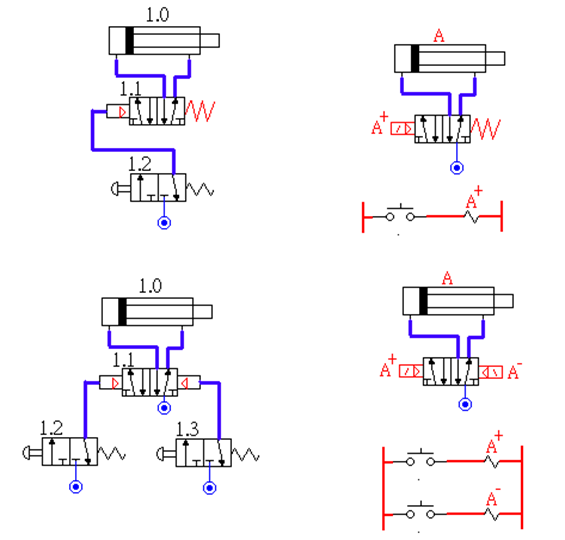 以亚德克气动元件为主,配置详见附件。气动元件均配有过渡底板,可方便、随意地将元件安放在实验面板(面板带"T"沟槽形式的铝合金型材结构)上。回路搭接采用快换接头,拆接方便快捷。