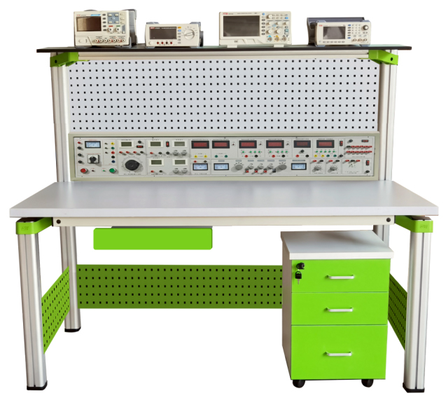 实训机头为铁质双层亚光密纹喷塑结构,铝质面板,为实训提供直流电源、函数信号发生器、测试仪表及实训器件等。