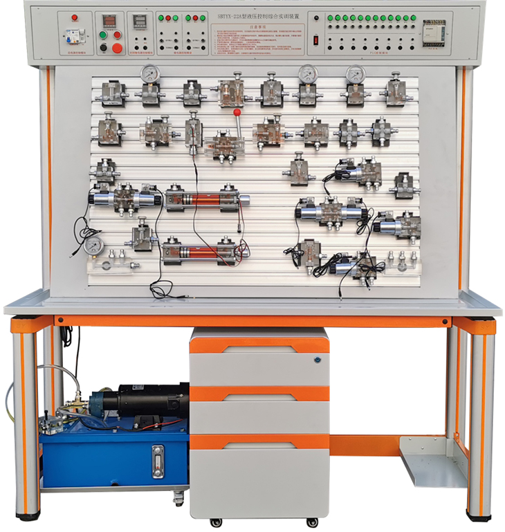 液压控制综合实训装置,液压综合实验台透明液压元件均采用进口透明有机玻璃材料由数控加工中心加工制作而成,可清晰直观的观察和了解到液压元件的内部结构及液压传动回路的工作过程。