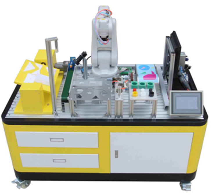 工业机器人实训平台,以关节型六轴串联工业机器人为核心,在操作平台的四周合理分布有多种不同工艺应用的实训模块,包含了搬运码垛工艺、分拣工艺、抛光打磨工艺、装配工艺、焊接工艺等工业机器人最典型应用,不仅满足了职业院校不同专业学生针对工业机器人的操作和编程的教学需求,完全来源于工业应用现场的特征也使该工作站更加适合于作为职业技能竞赛平台。